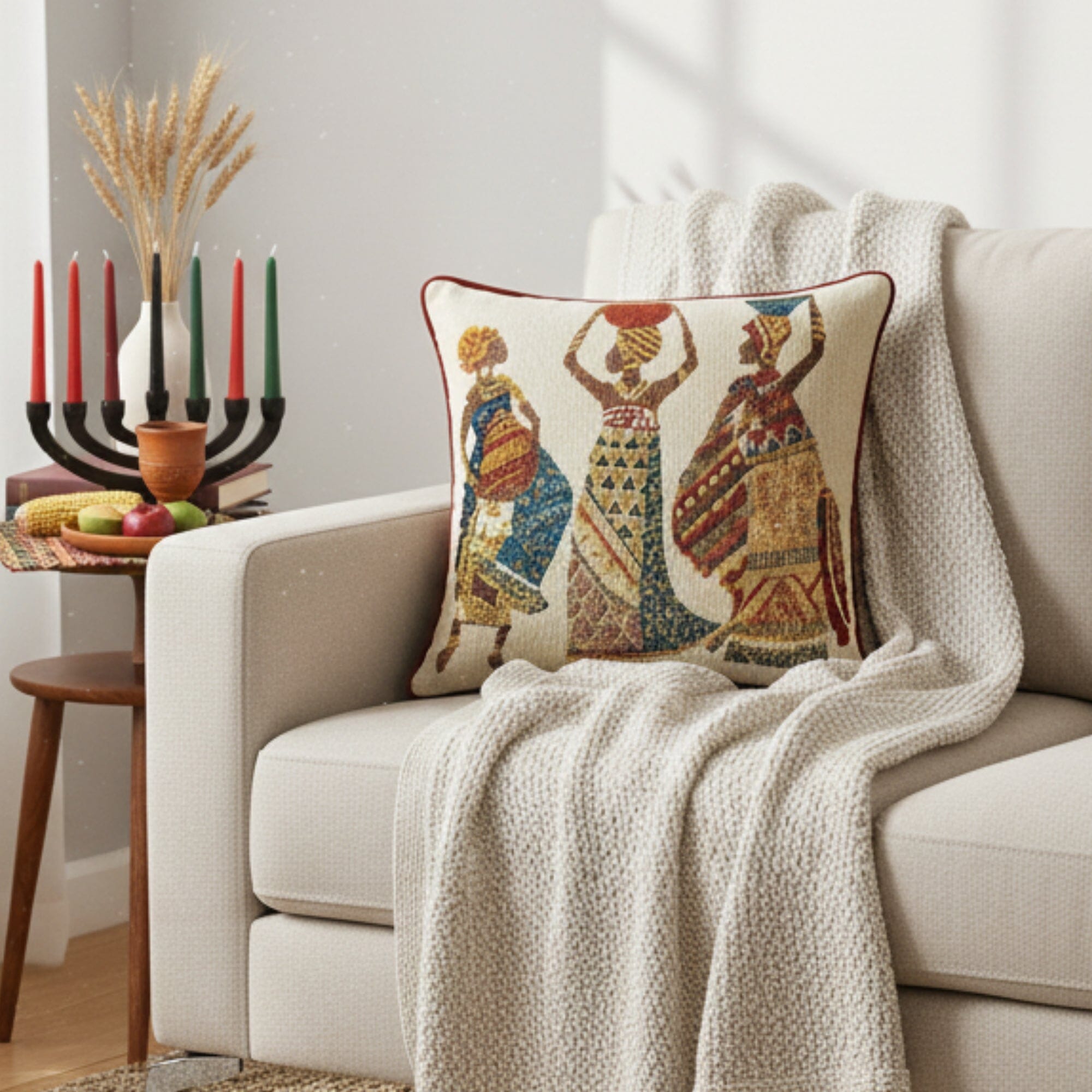 Decorate your living space with our beautiful and colorful dancing African women designs on our one of a kind DaDa Bedding throw pillow covers.